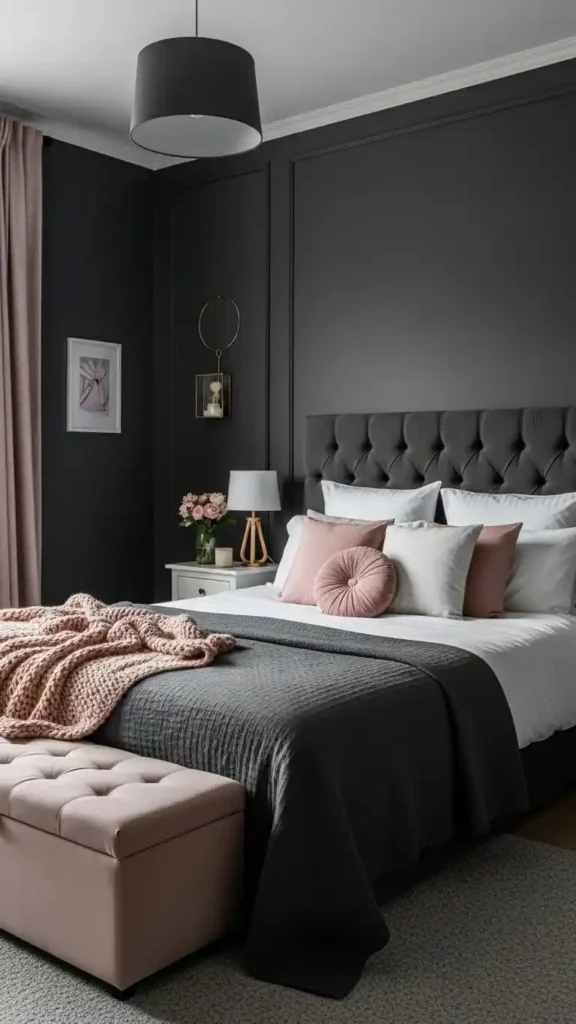 1. Deep Charcoal Walls with Soft Accents