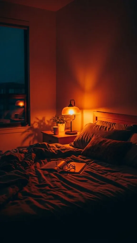 Soft, low lighting is essential in dark feminine spaces. Warm bedside lamps or wall sconces create a flattering glow.