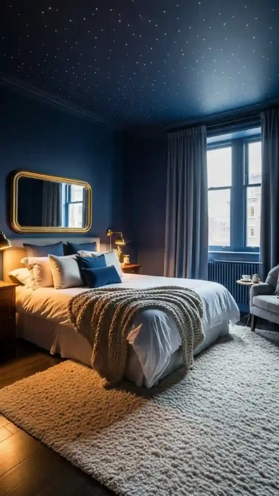 10. Navy Blue Ceiling for a Cozy Cocoon Effect