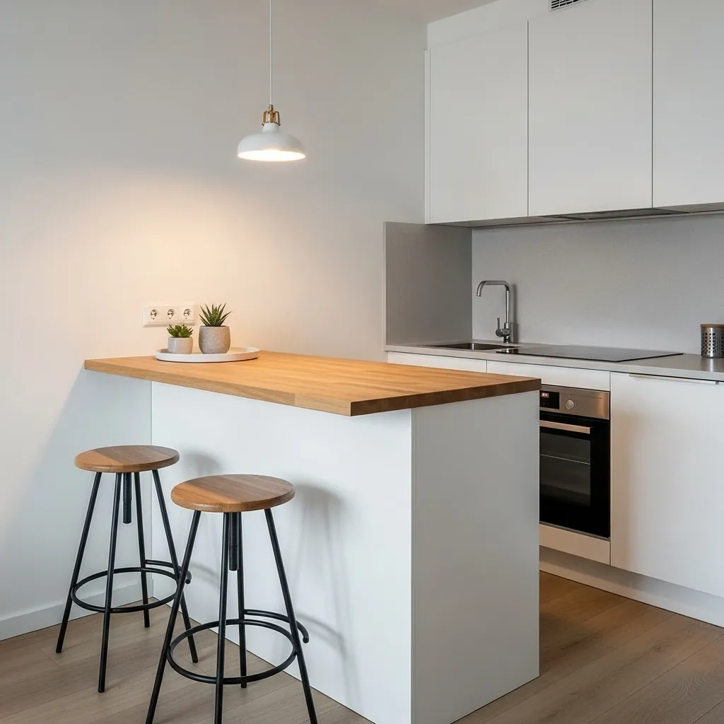 Add a small pendant light or decorative items to bring warmth. This multifunctional setup blends style, practicality, and efficiency, making the most of limited square footage.