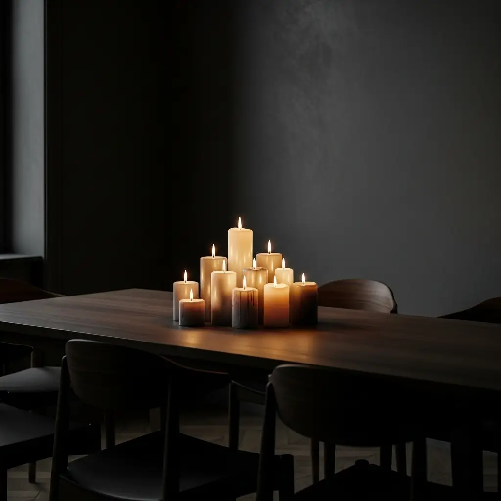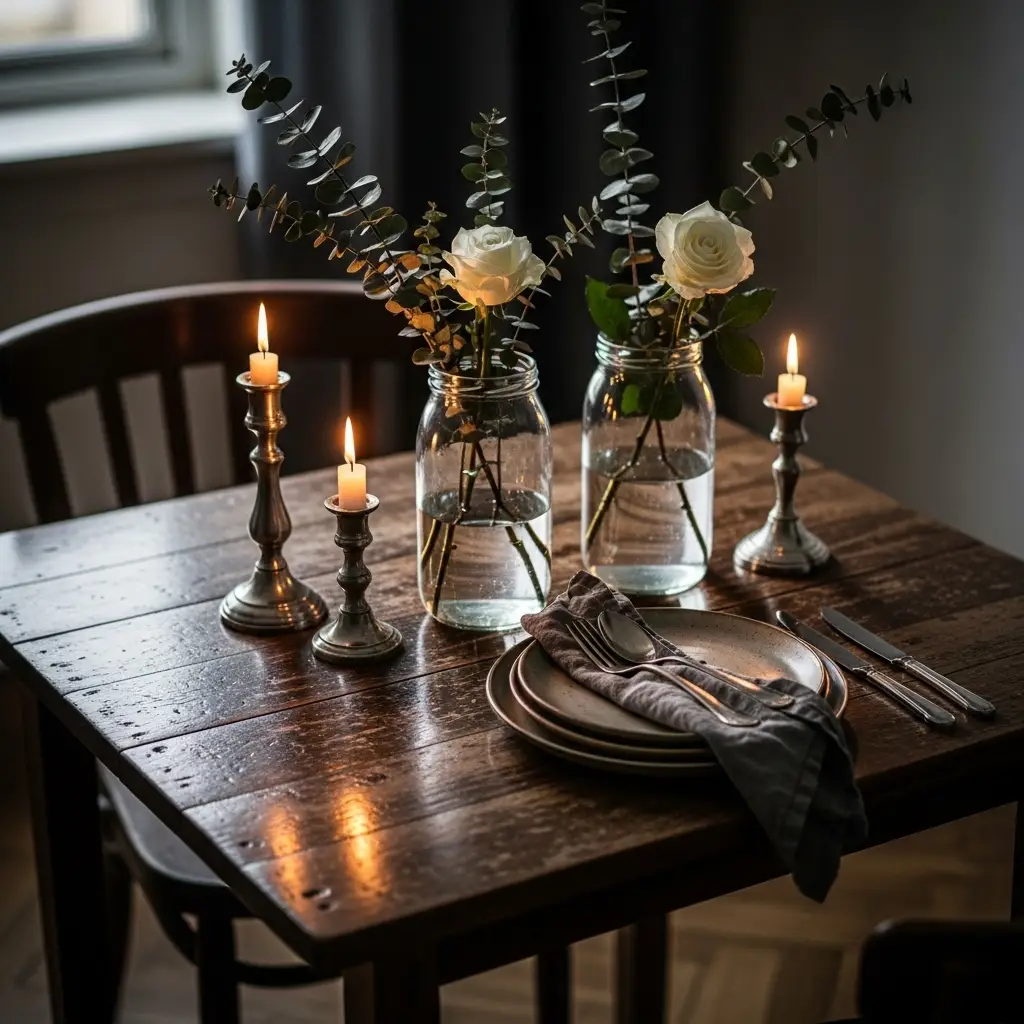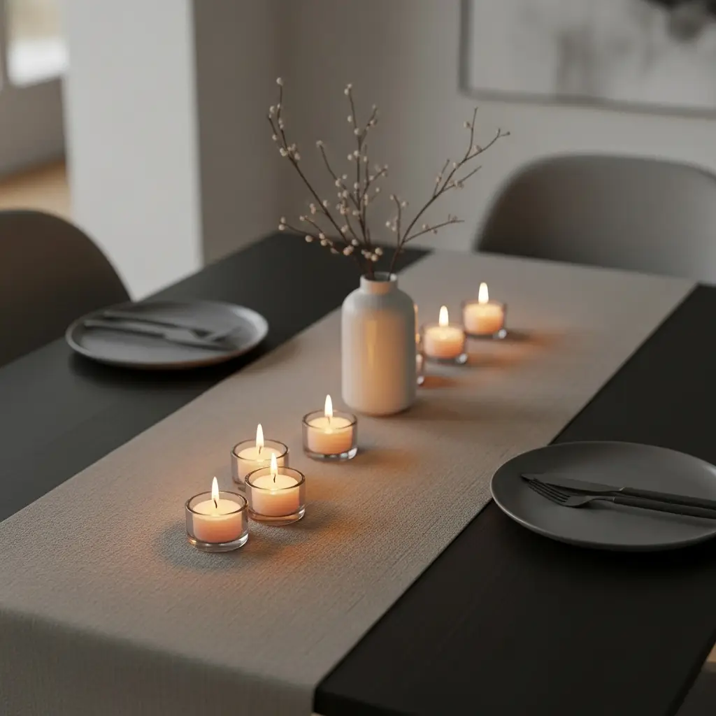 Combine with a simple runner or small branch. The warm glow enhances textures and shadows. This budget-friendly trick adds elegance, mood, and Pinterest-ready style to any dark dining space.