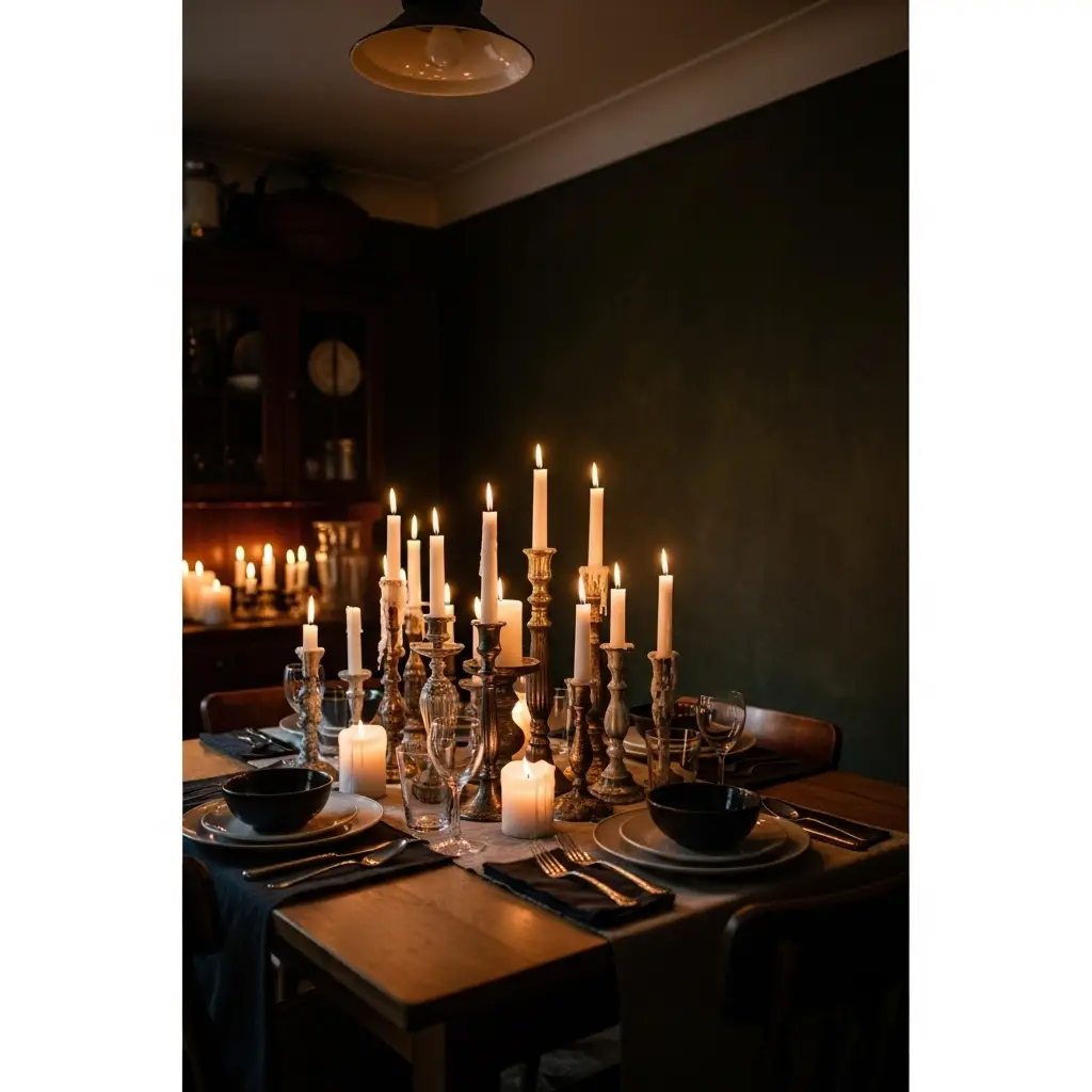 Use thrifted or repurposed candleholders for instant elegance. Vary heights and textures for visual interest.