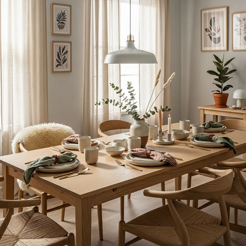 Scandinavian dining spaces focus on simplicity, comfort, and natural light—perfect for small homes. Light wood furniture makes the room feel airy and calm, while soft linens add warmth. Neutral colors help maintain a peaceful atmosphere, creating a timeless look that never feels overwhelming. This style is perfect for anyone wanting a clean, cozy, Pinterest-ready dining room.