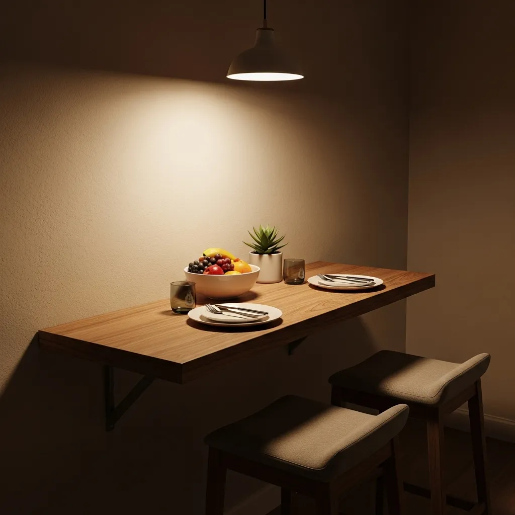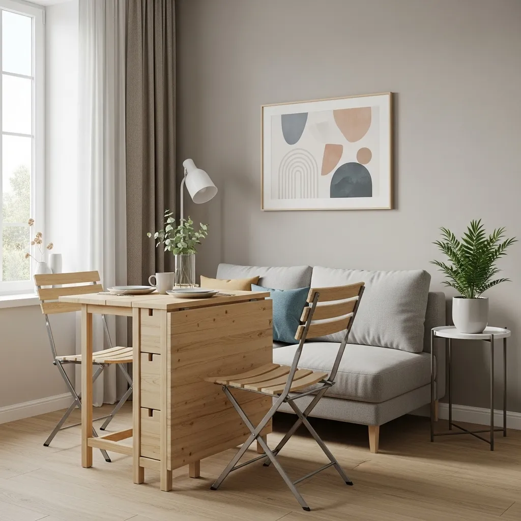 The beauty of foldable furniture is how it adapts to your routine. Hosting guests? Expand the dining zone. Want extra space for crafts or DIY projects? Fold everything away. A soft area rug, handmade wall art, and warm pendant lighting will add personality and charm, making the space functional and Pinterest-perfect at any moment.