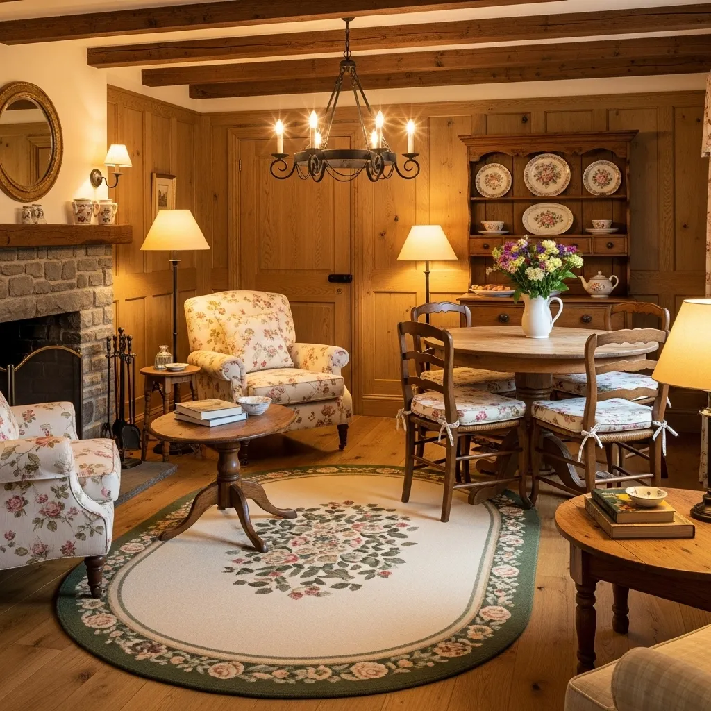 Cottage-style décor brings comforting warmth to small living–dining combos. Use soft florals, warm woods, and layered textures to define each area. A compact loveseat, small dining table, and handmade decorations create a welcoming, homey atmosphere perfect for Pinterest-inspired layouts.